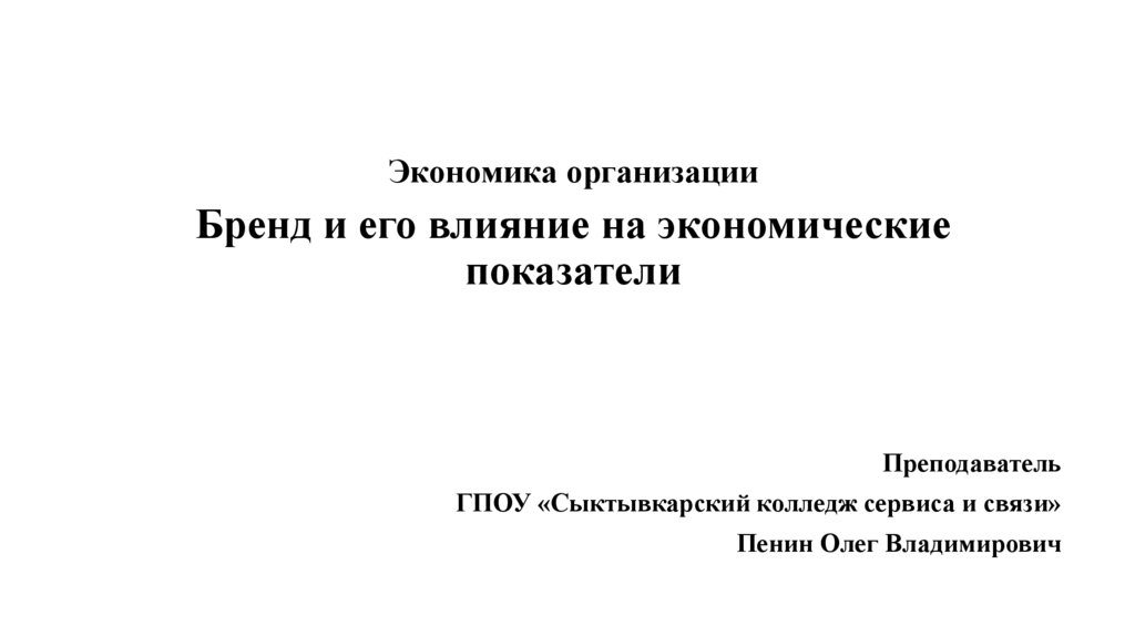 Экономика организацииБренд и его влияние на экономические