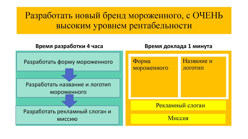Разработать новый бренд мороженного, с ОЧЕНЬвысоким уровнем рентабельности