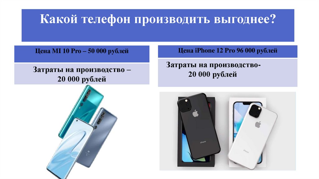 Какой телефон производить выгоднее?Цена MI 10 Pro – 50 000 рублей