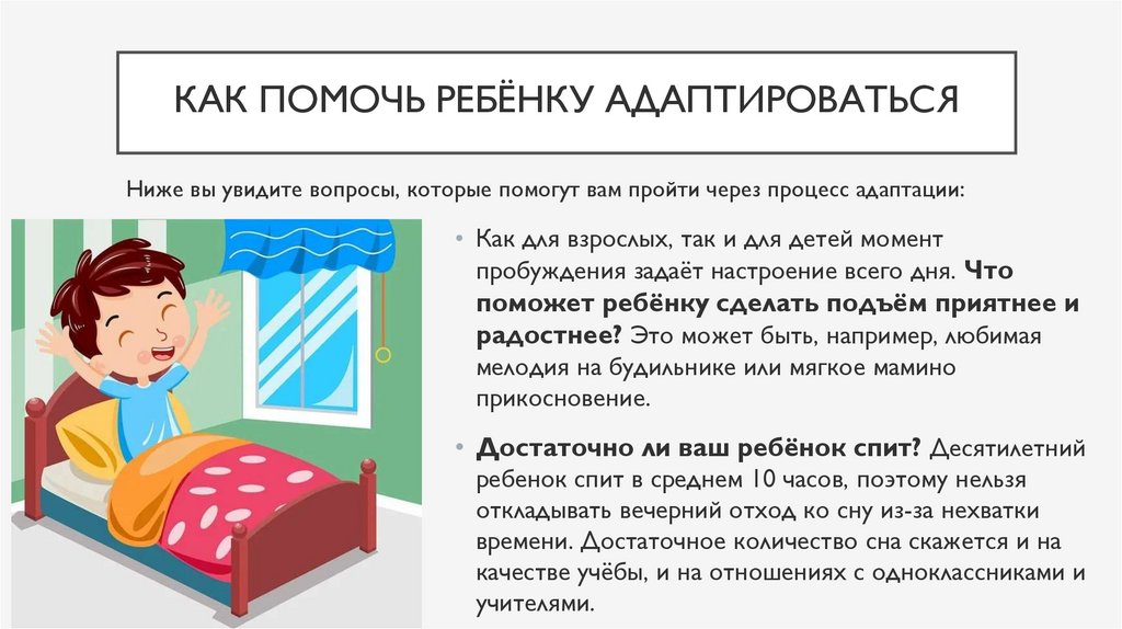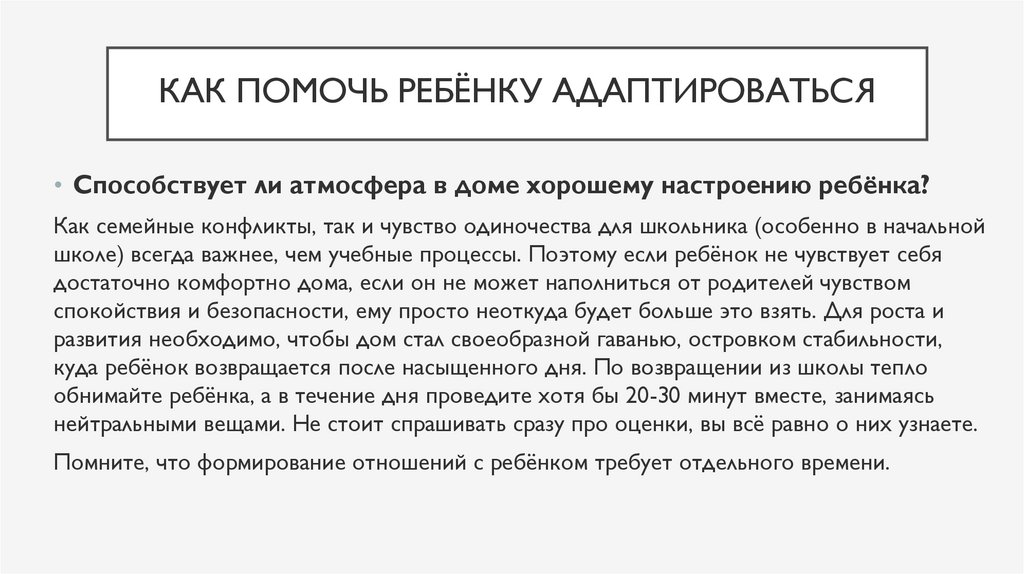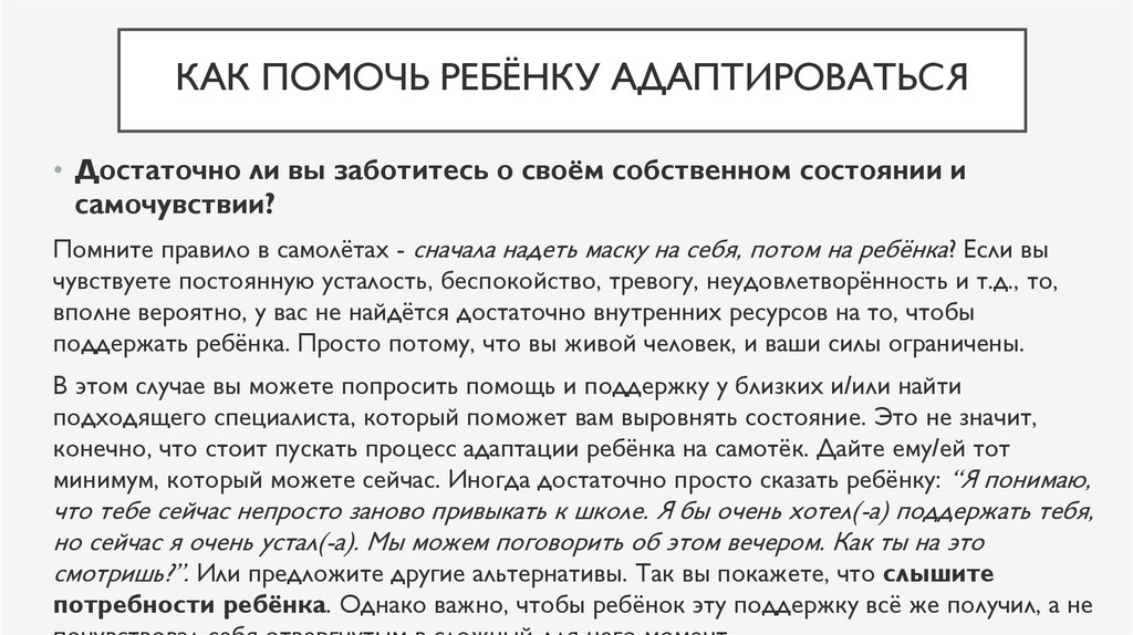 КАК ПОМОЧЬ РЕБЁНКУ АДАПТИРОВАТЬСЯ• Достаточно ли вы заботитесь о своём собственном состоянии и