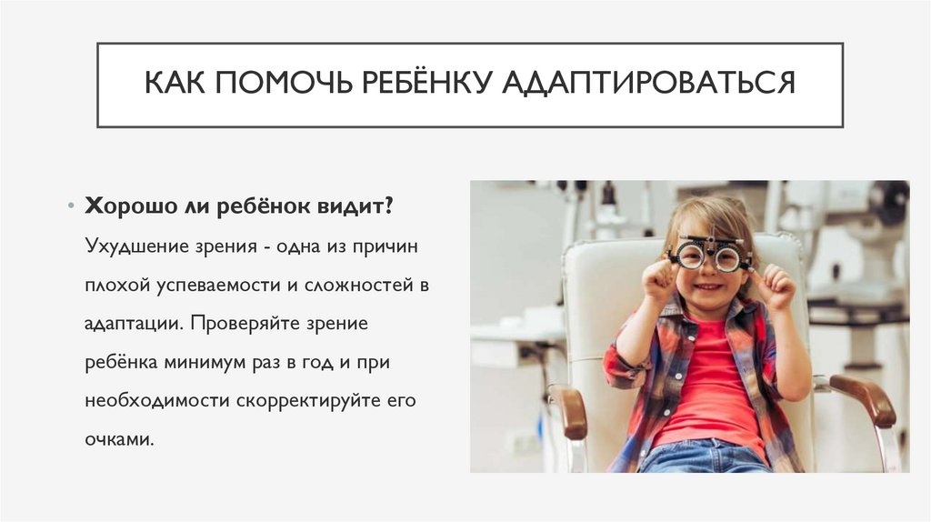 КАК ПОМОЧЬ РЕБЁНКУ АДАПТИРОВАТЬСЯ• Хорошо ли ребёнок видит?