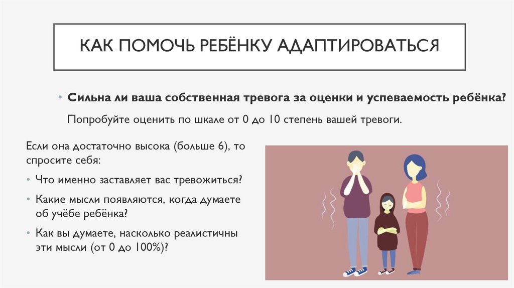 КАК ПОМОЧЬ РЕБЁНКУ АДАПТИРОВАТЬСЯ• Сильна ли ваша собственная тревога за оценки и успеваемость ребёнка?