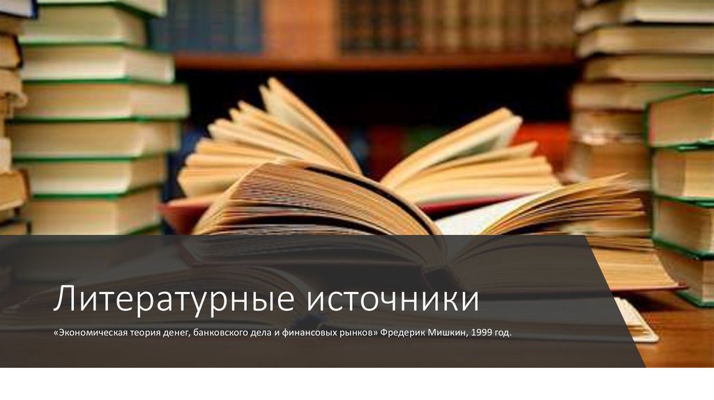 Литературные источники«Экономическая теория денег, банковского дела и финансовых рынков» Фредерик Мишкин, 1999 год.