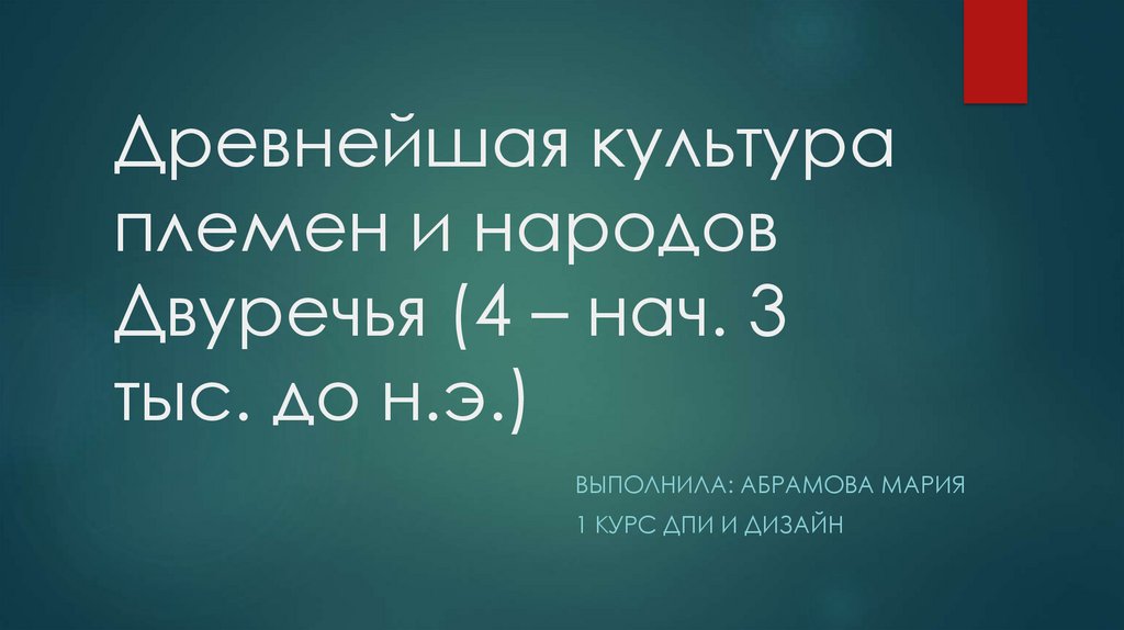 Древнейшая культура племен и народов Двуречья (4 – нач. 3 тыс. до н.э.)