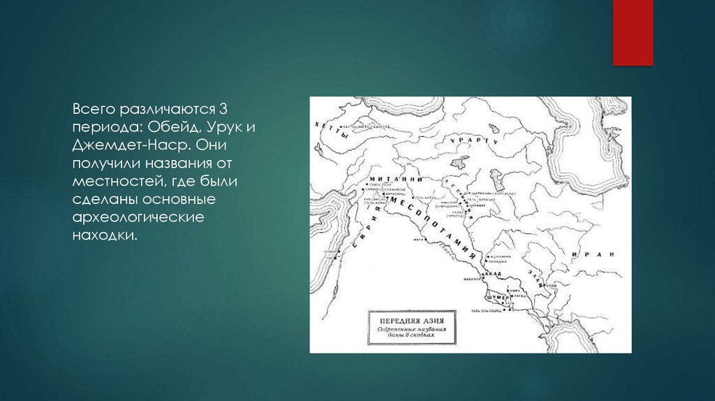 Всего различаются 3периода: Обейд, Урук и