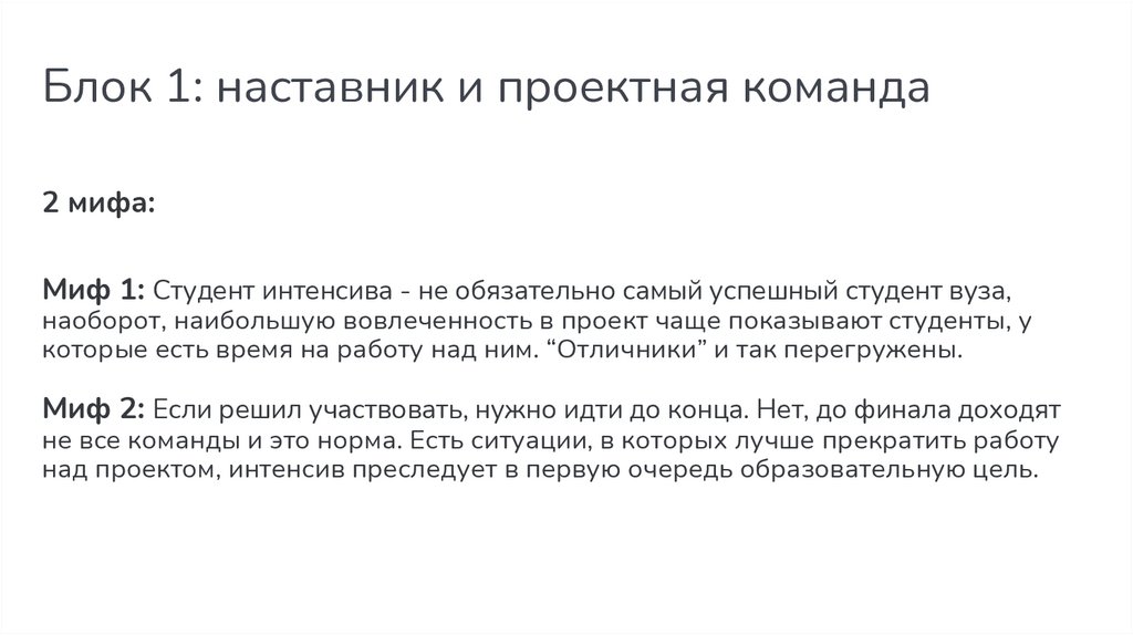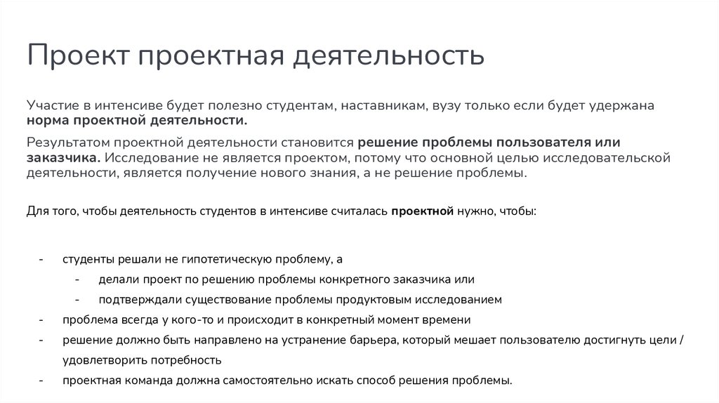 Проект проектная деятельностьУчастие в интенсиве будет полезно студентам, наставникам, вузу только если будет удержана