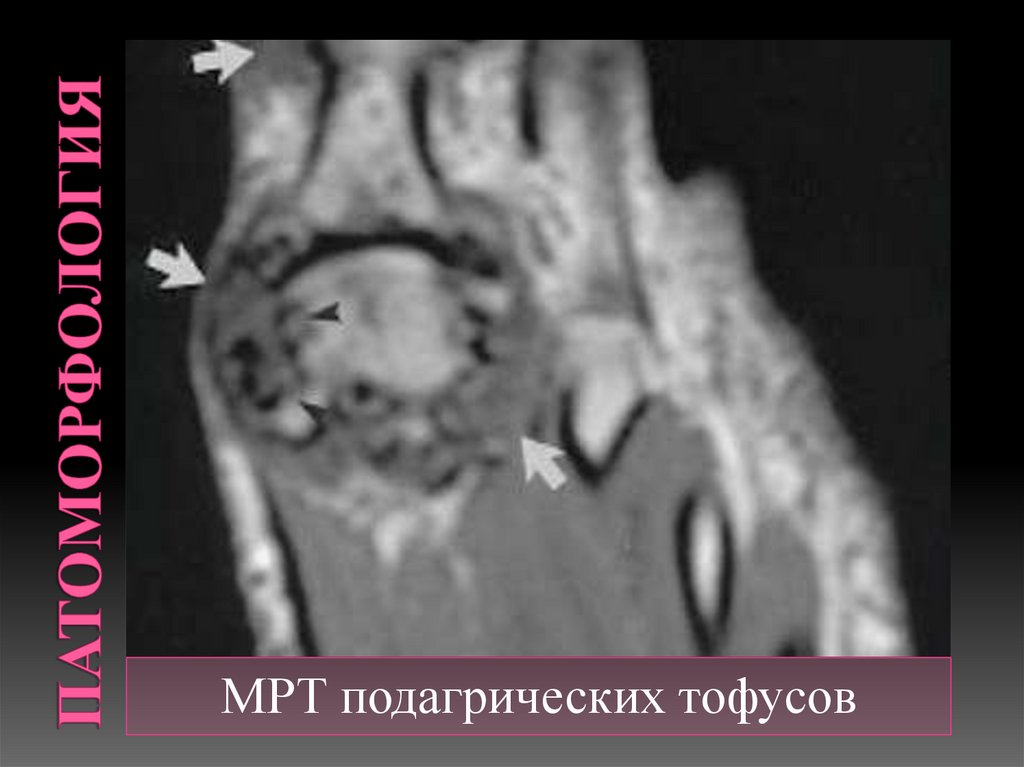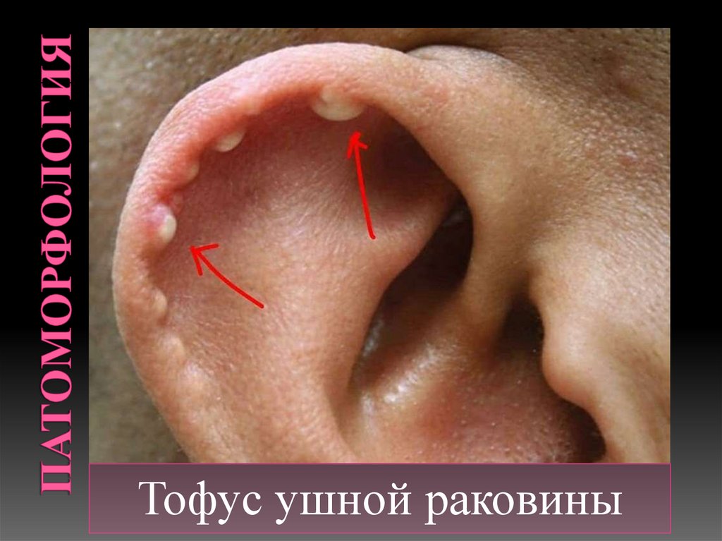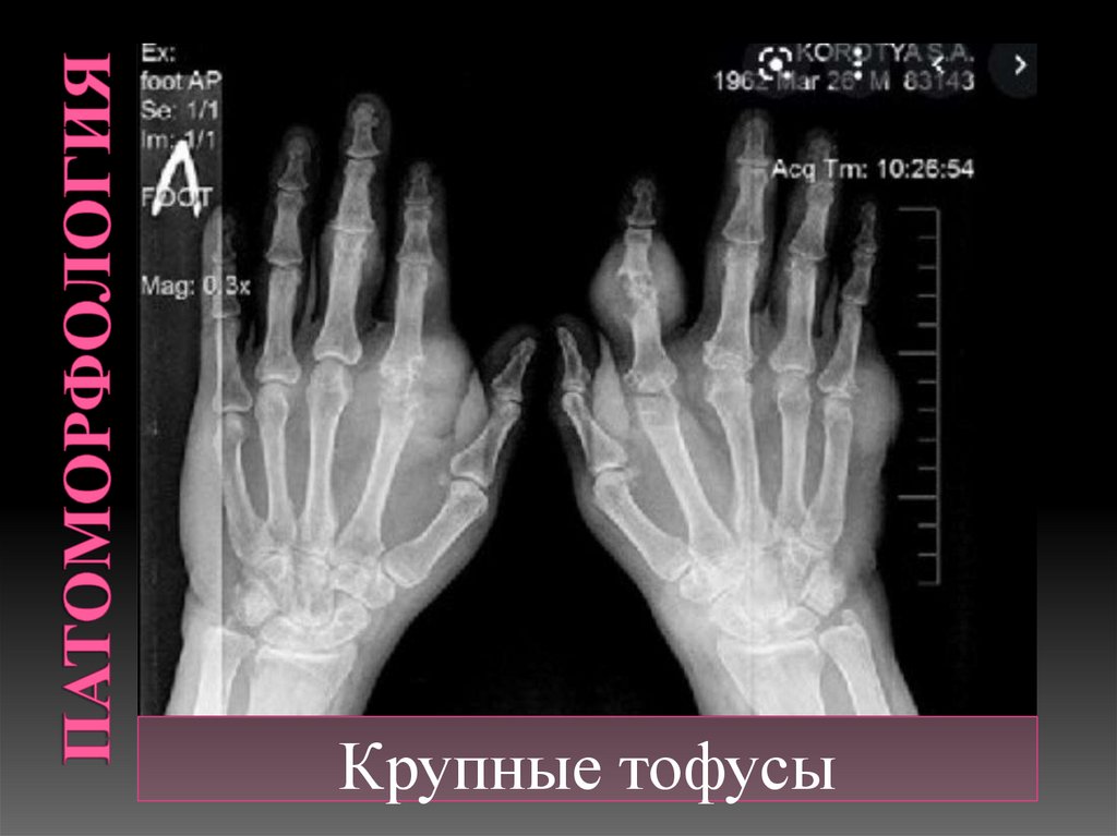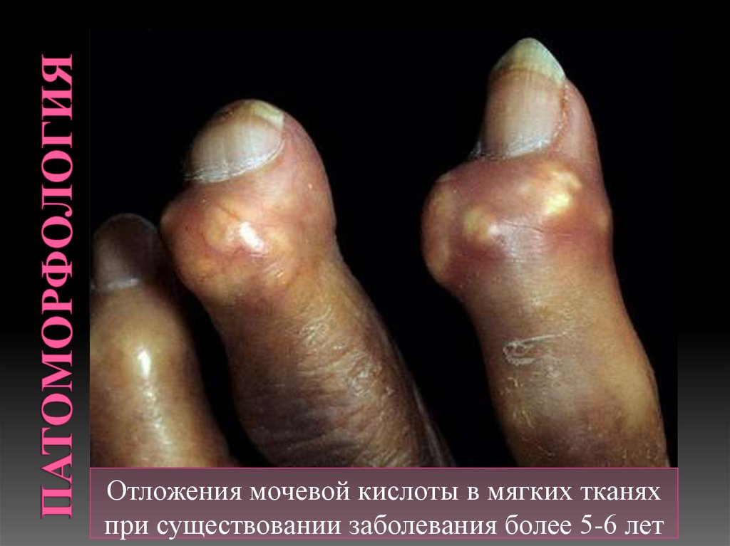 Отложения мочевой кислоты в мягких тканяхпри существовании заболевания более 5-6 лет