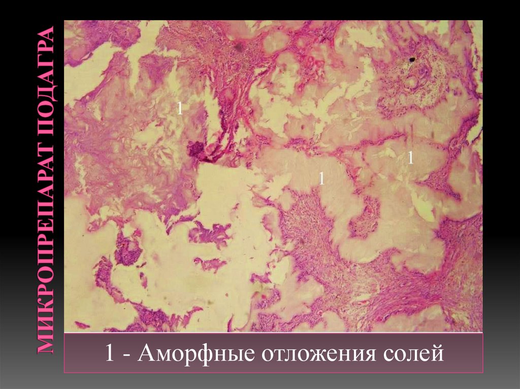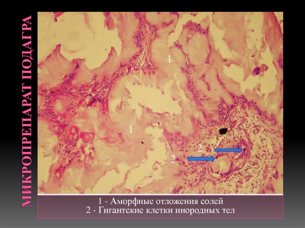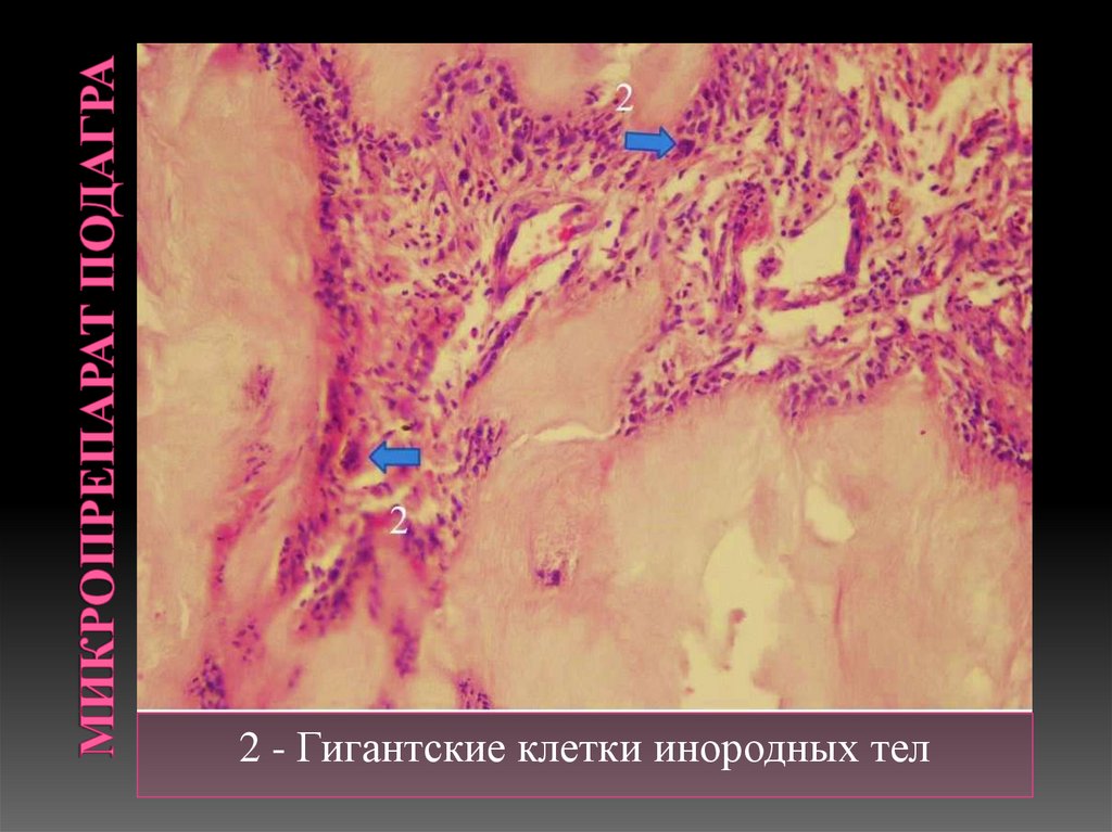 1 - Аморфные отложения солей2 - Гигантские клетки инородных тел