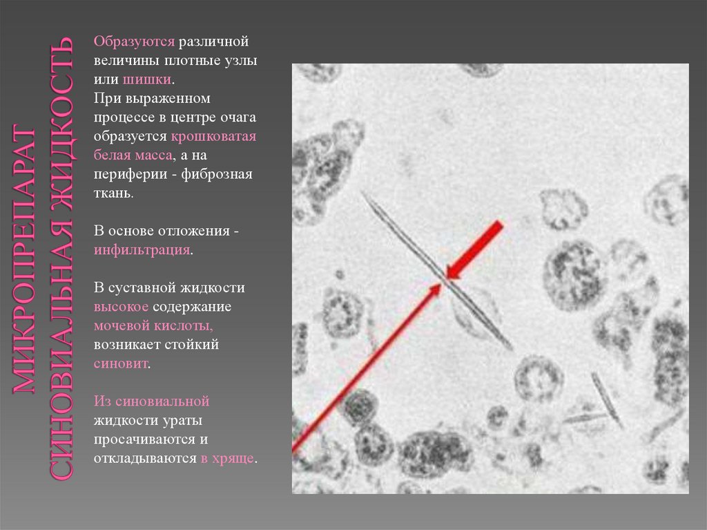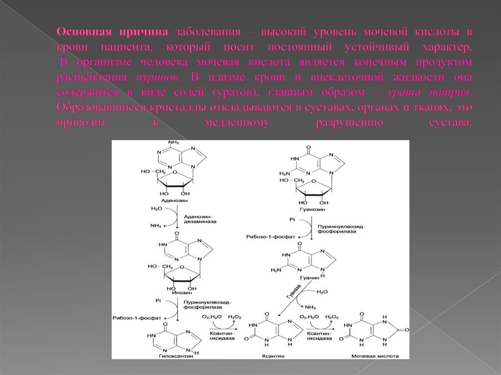 суставах кристаллов мочевой кислоты, что приведёт к снижению количества