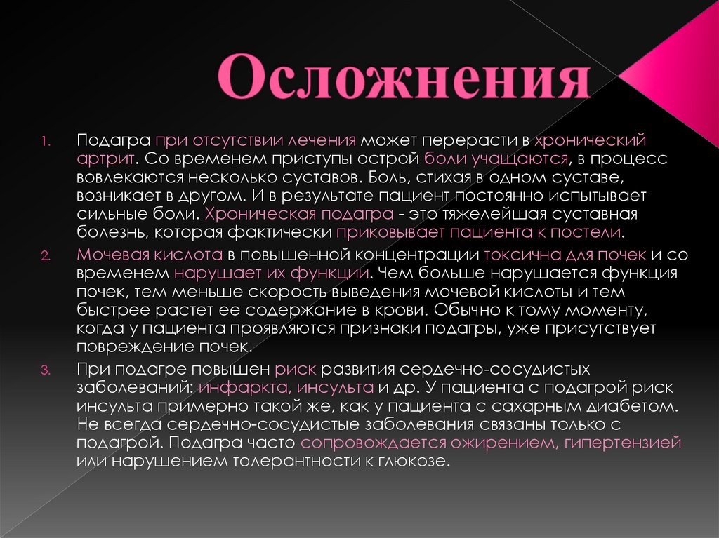 заболеваний: инфаркта, инсульта и др. У пациента с подагрой риск