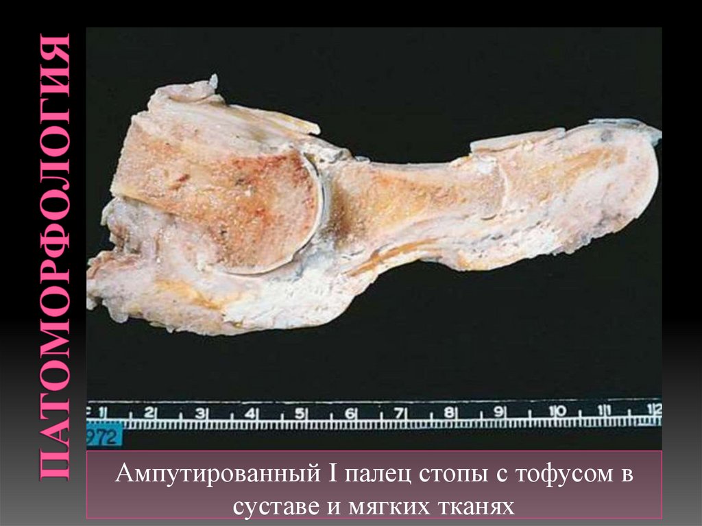 Ампутированный I палец стопы с тофусом всуставе и мягких тканях