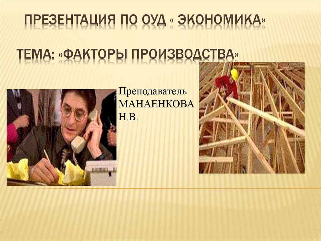 ПРЕЗЕНТАЦИЯ ПО ОУД « ЭКОНОМИКА»ТЕМА: «ФАКТОРЫ ПРОИЗВОДСТВА»