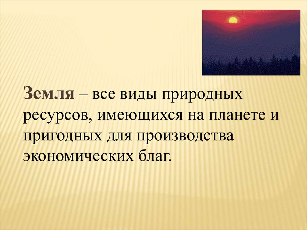 Земля – все виды природныхресурсов, имеющихся на планете и