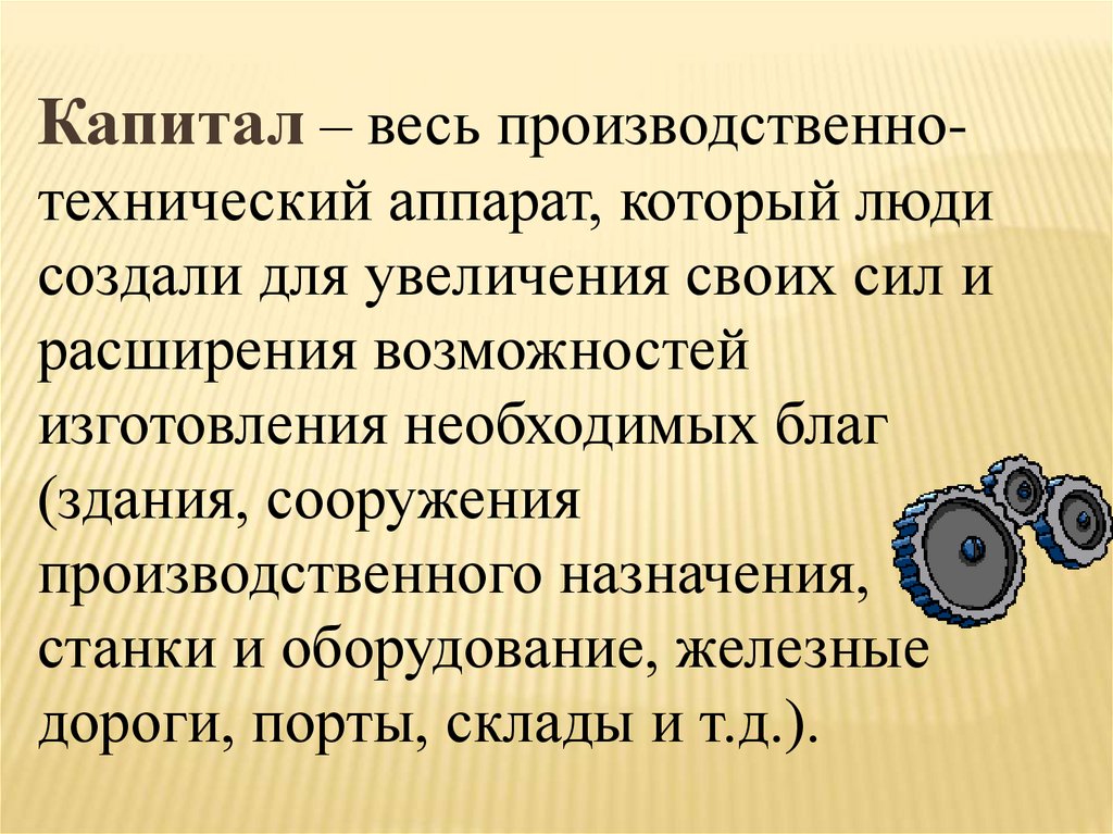 Капитал – весь производственнотехнический аппарат, который людисоздали для увеличения своих сил и