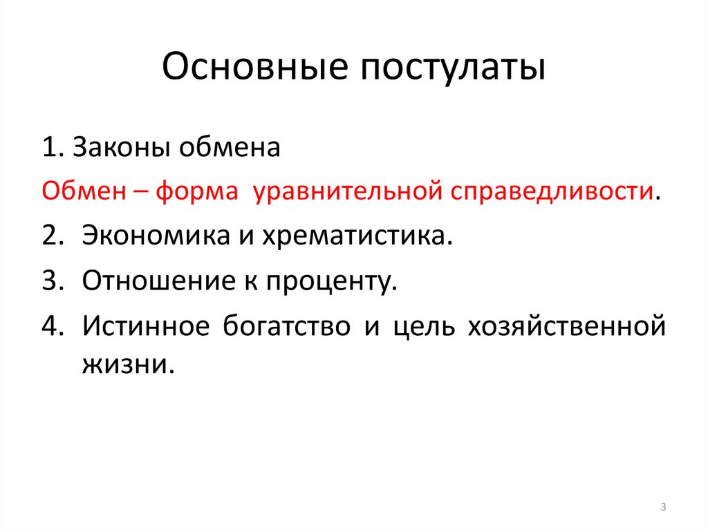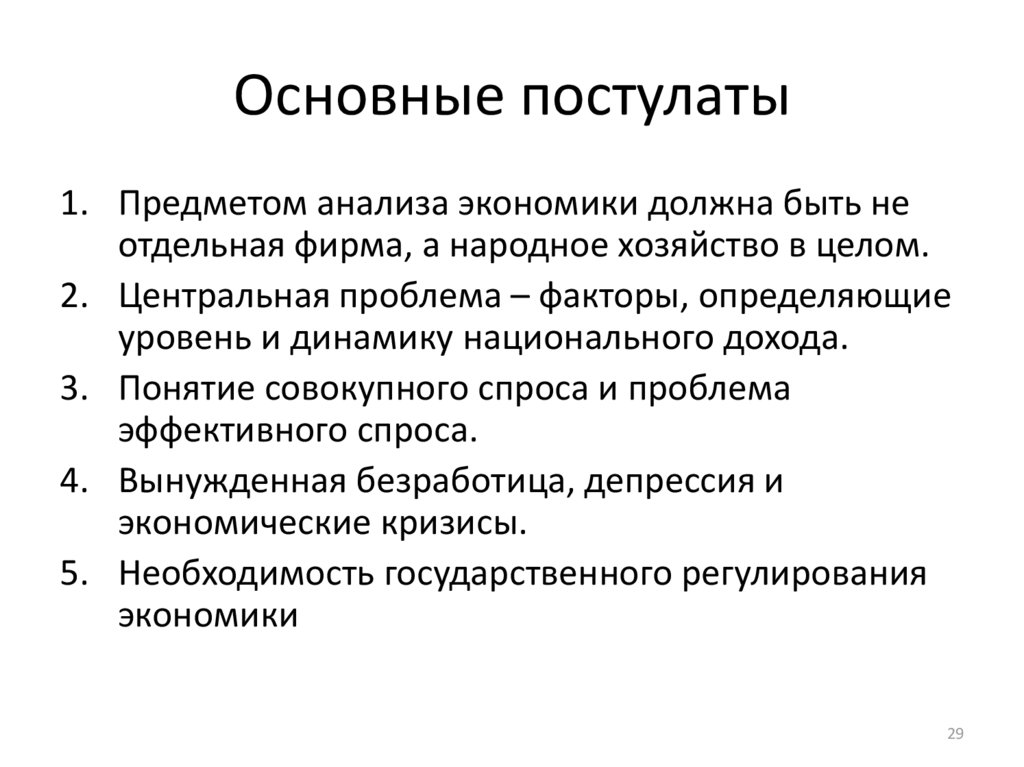 Основные постулаты1. Предметом анализа экономики должна быть не