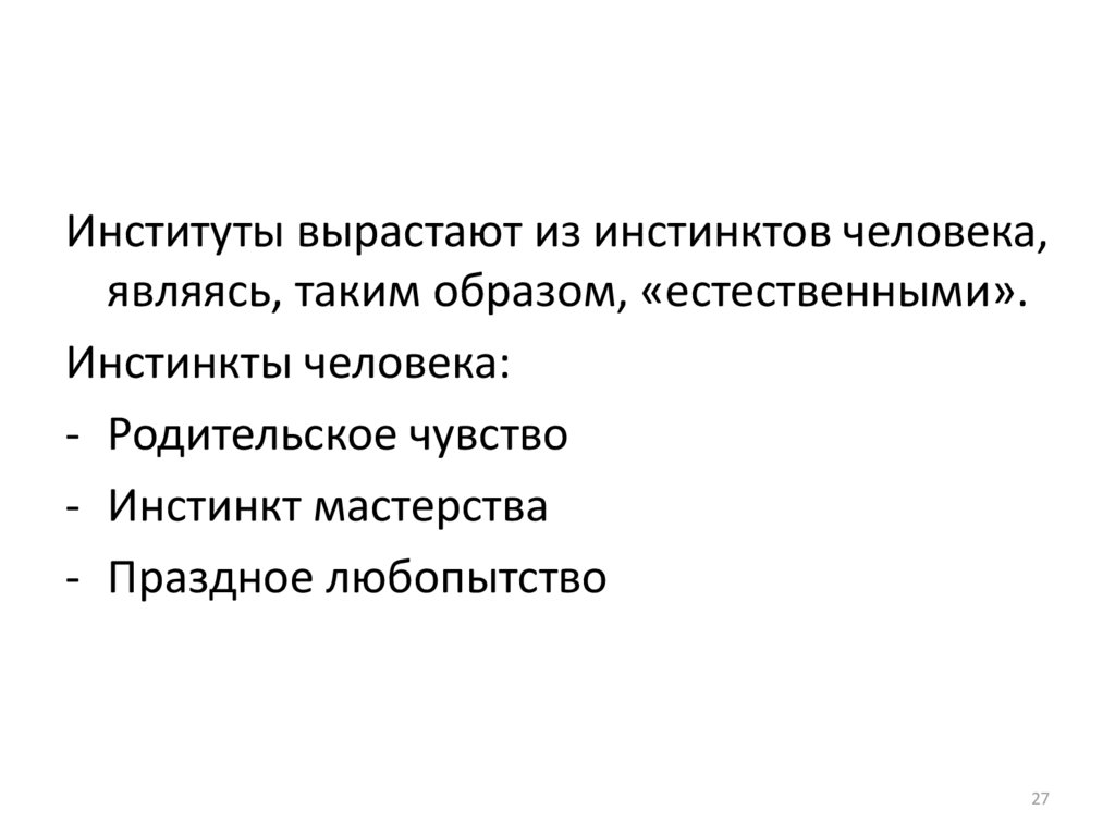 Институты вырастают из инстинктов человека,являясь, таким образом, «естественными».