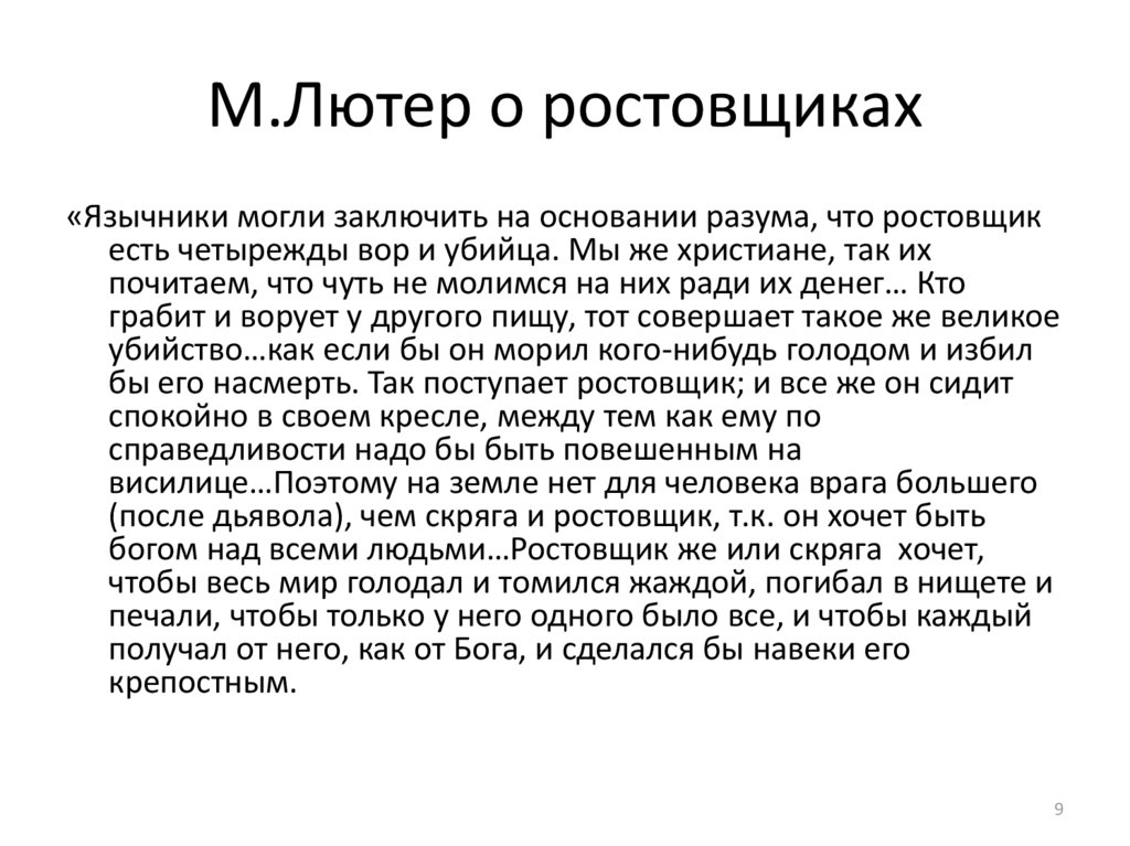 М.Лютер о ростовщиках«Язычники могли заключить на основании разума, что ростовщик