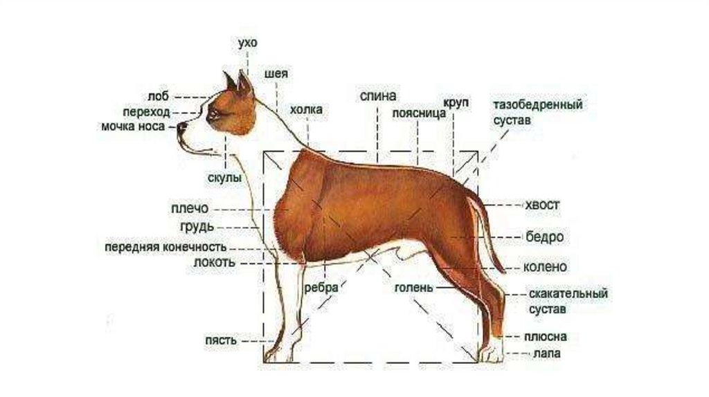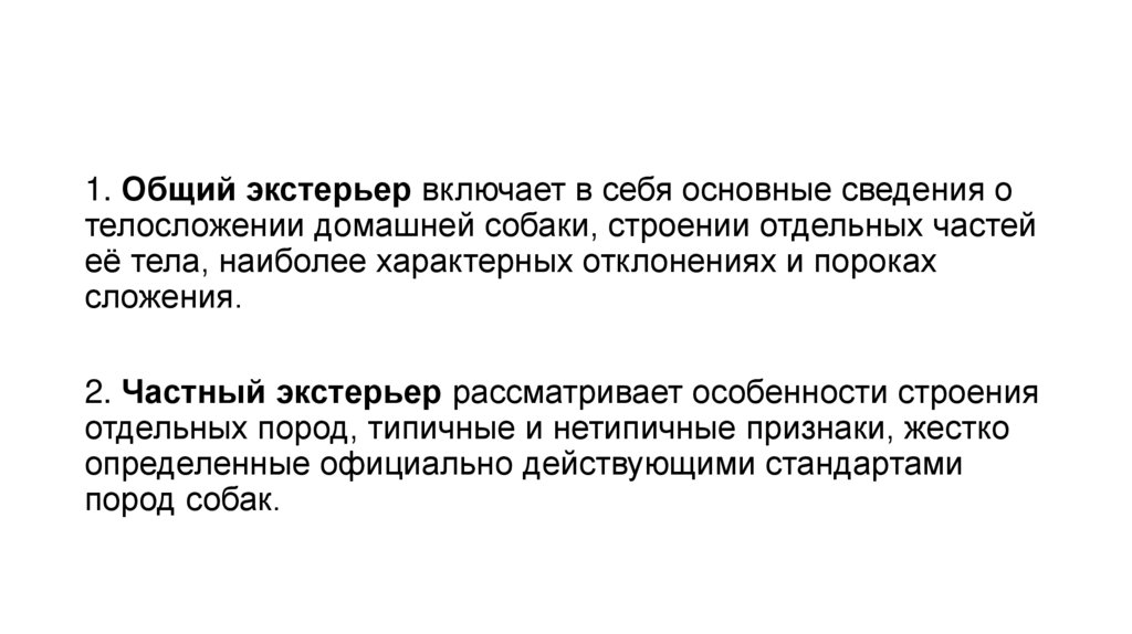 1. Общий экстерьер включает в себя основные сведения отелосложении домашней собаки, строении отдельных частей