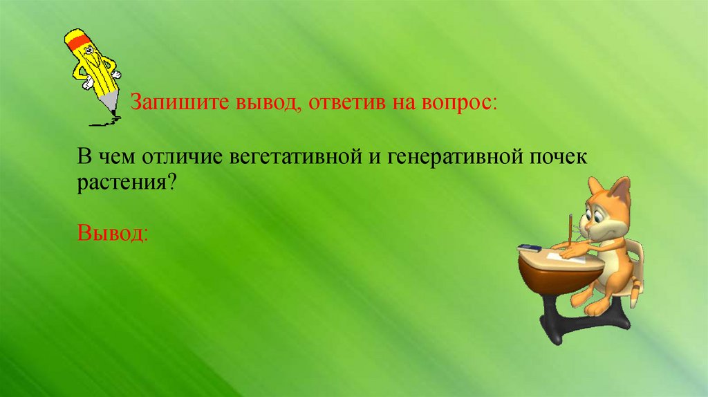 Запишите вывод, ответив на вопрос:В чем отличие вегетативной и генеративной почек