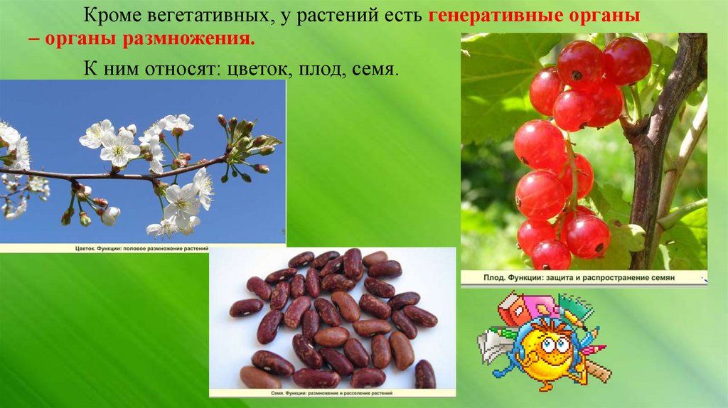 Кроме вегетативных, у растений есть генеративные органы– органы размножения.