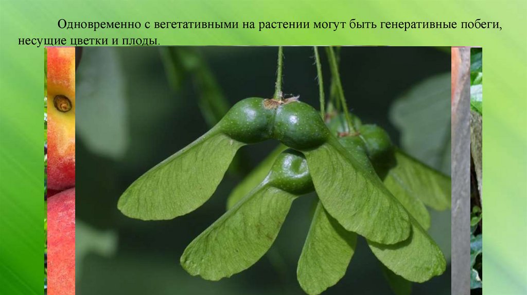 Одновременно с вегетативными на растении могут быть генеративные побеги,несущие цветки и плоды.
