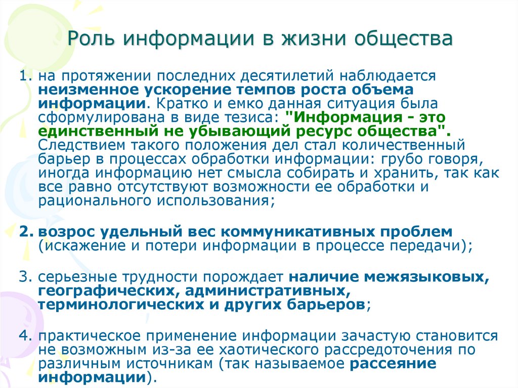 Роль информации в жизни общества1. на протяжении последних десятилетий наблюдается