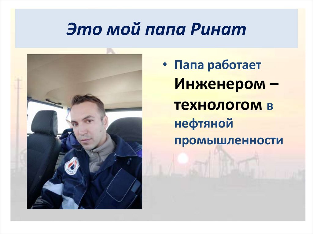 Профессия моего папы - инженер-технолог а нефтяной промышленности