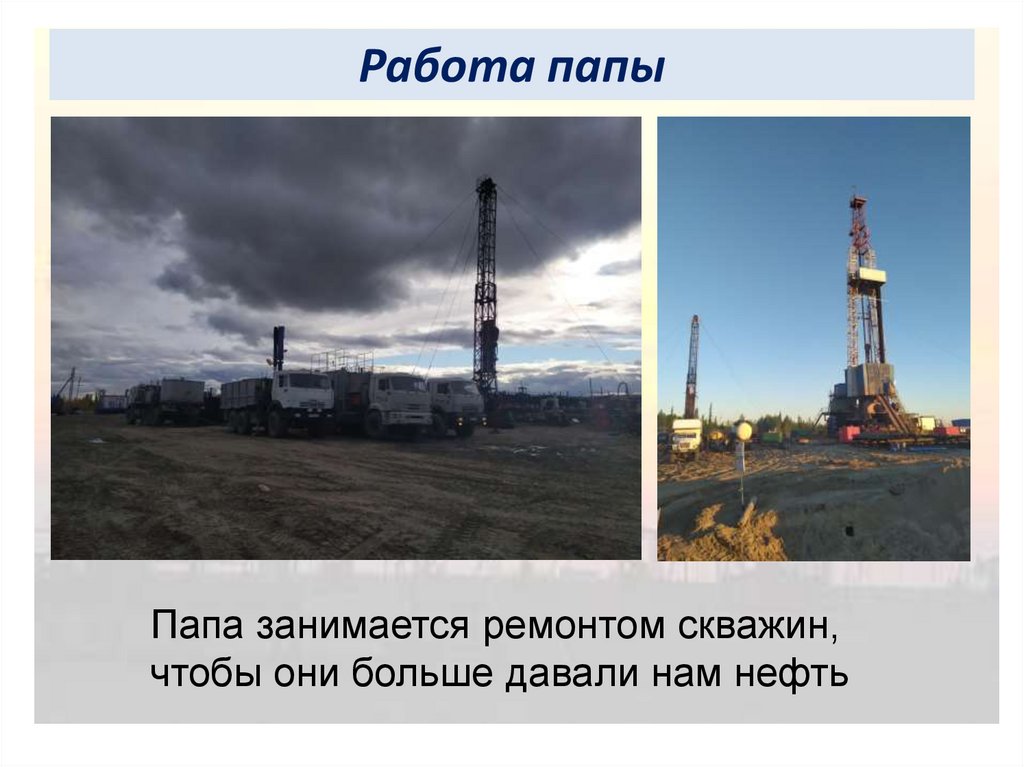 Работа папыПапа занимается ремонтом скважин,