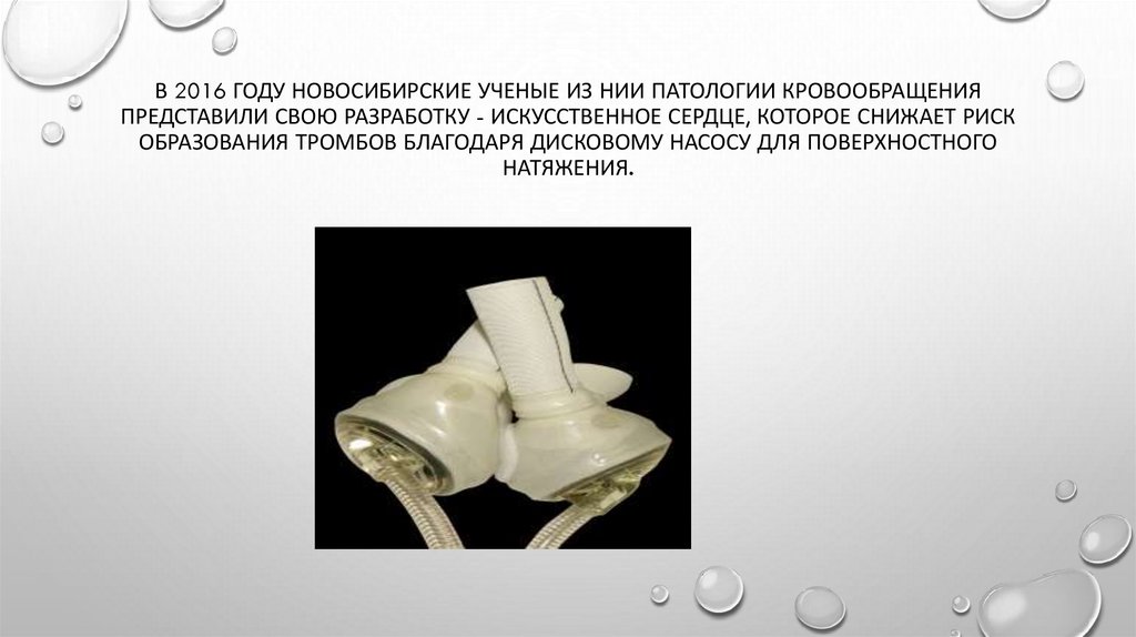 В 2016 ГОДУ НОВОСИБИРСКИЕ УЧЕНЫЕ ИЗ НИИ ПАТОЛОГИИ КРОВООБРАЩЕНИЯПРЕДСТАВИЛИ СВОЮ РАЗРАБОТКУ - ИСКУССТВЕННОЕ СЕРДЦЕ, КОТОРОЕ СНИЖАЕТ РИСК