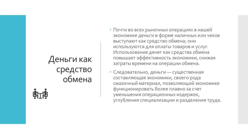 Использование денег как средства обмена