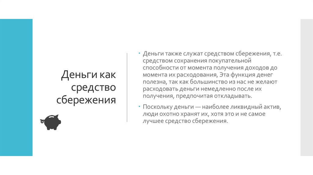 средство сбережения. Именно функция денег