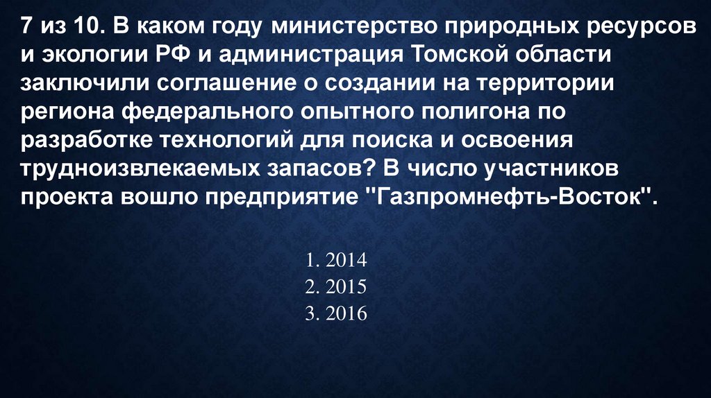 7 из 10. В каком году министерство природных ресурсови экологии РФ и администрация Томской области
