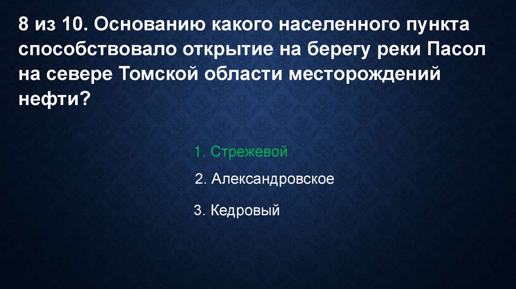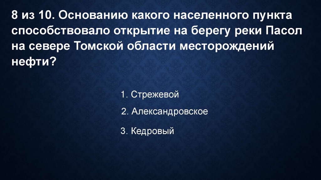 8 из 10. Основанию какого населенного пунктаспособствовало открытие на берегу реки Пасол