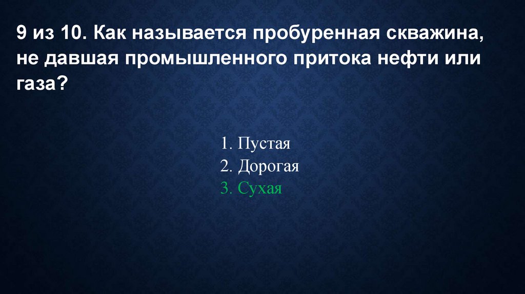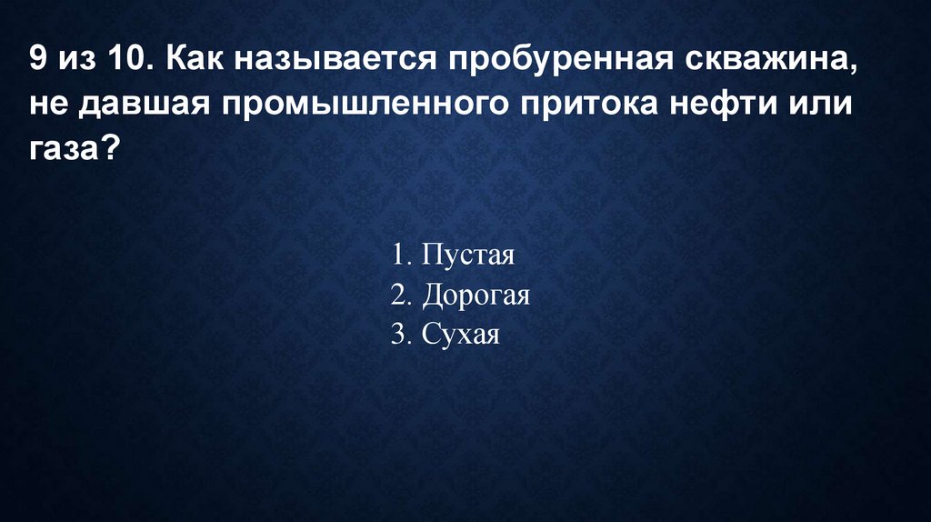 9 из 10. Как называется пробуренная скважина,не давшая промышленного притока нефти или