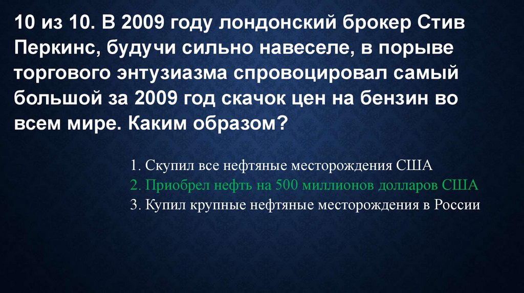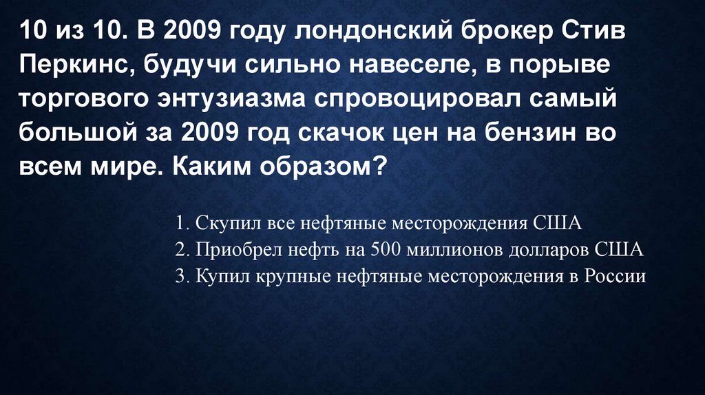 1. Скупил все нефтяные месторождения США