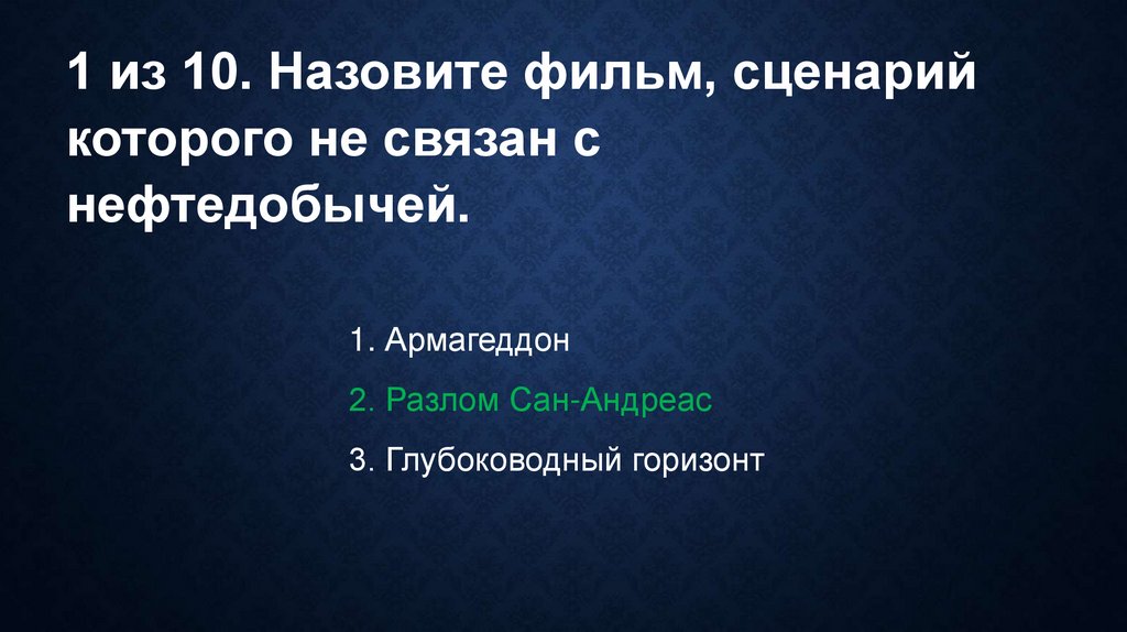 1 из 10. Назовите фильм, сценарийкоторого не связан с