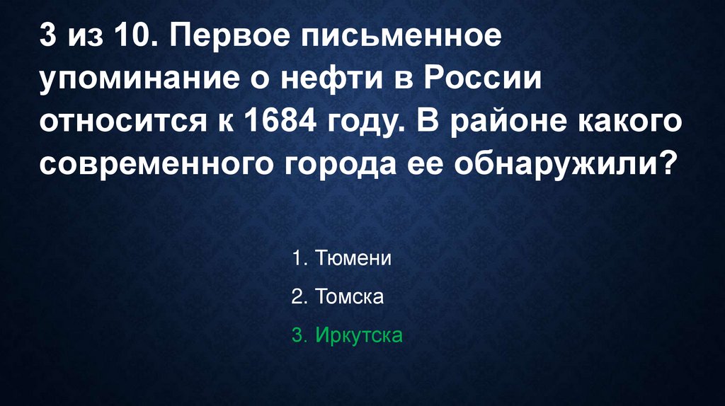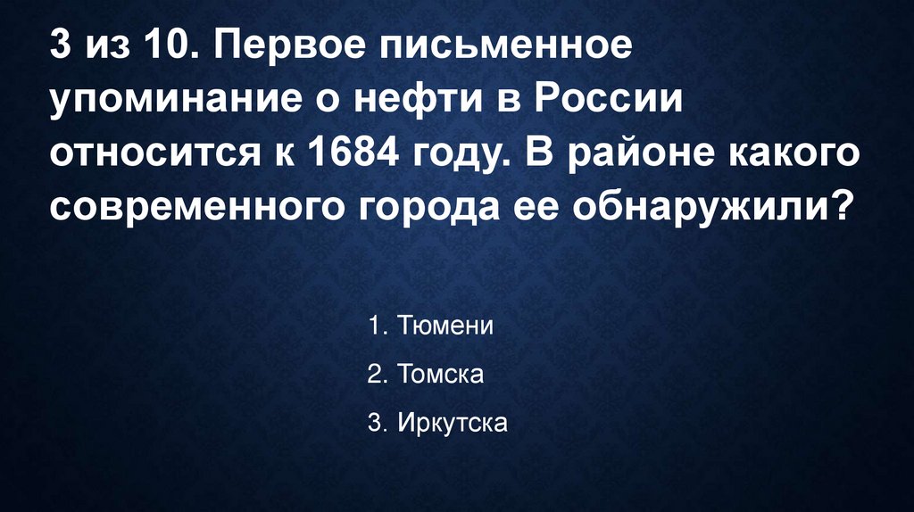 3 из 10. Первое письменноеупоминание о нефти в России