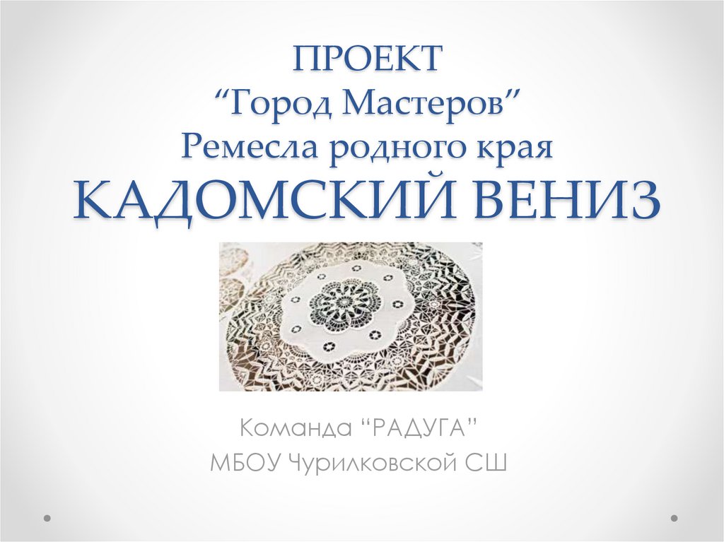 История возникновения• История возникновения Кадомского вениза уходит