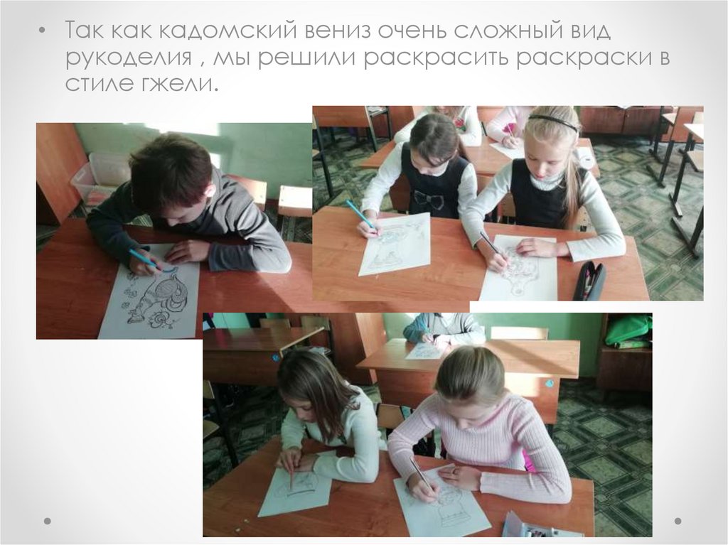 • Так как кадомский вениз очень сложный видрукоделия , мы решили раскрасить раскраски в