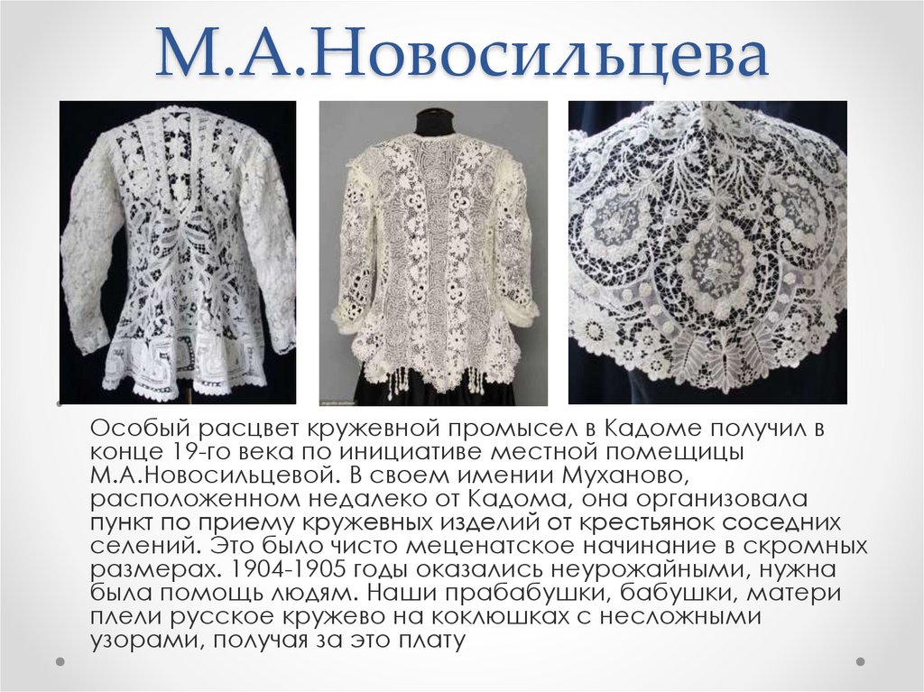 М.А.НовосильцеваОсобый расцвет кружевной промысел в Кадоме получил в