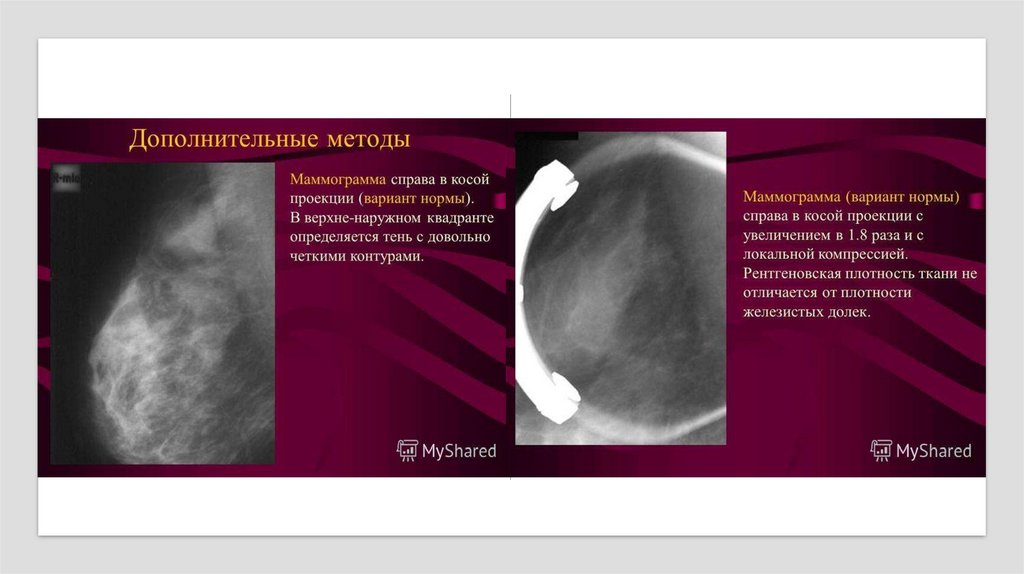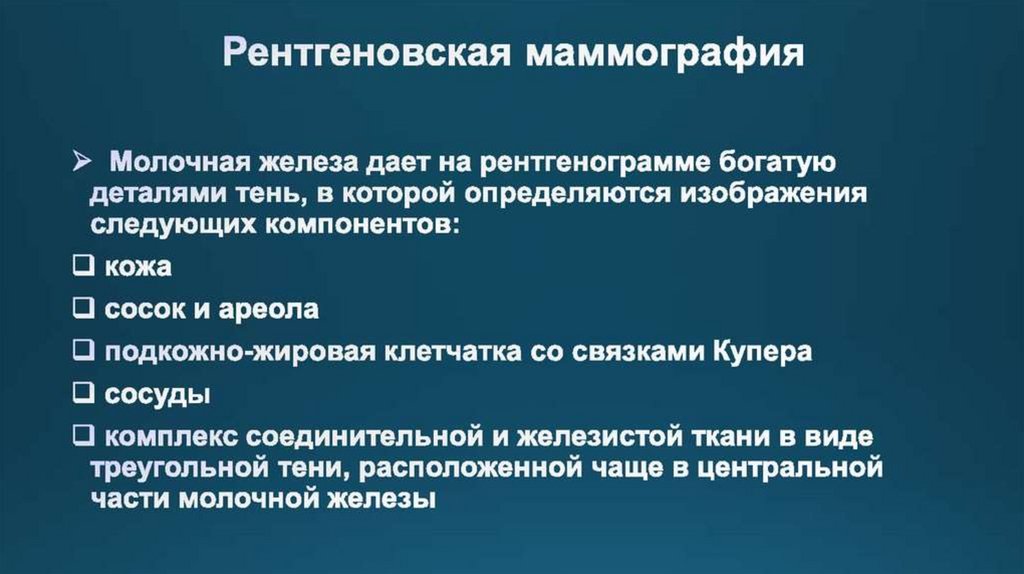 • На маммограмме выявляются множественные тени неправильной формы с нечеткими границами.
