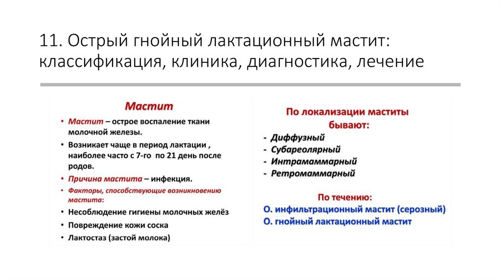 11. Острый гнойный лактационный мастит:классификация, клиника, диагностика, лечение