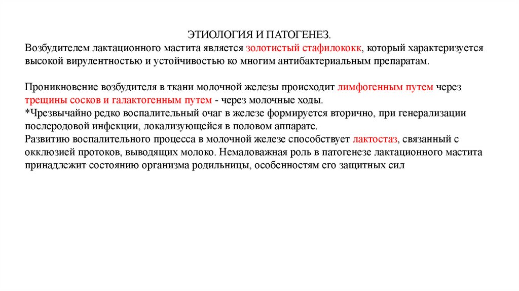 ЭТИОЛОГИЯ И ПАТОГЕНЕЗ.Возбудителем лактационного мастита является золотистый стафилококк, который характеризуется