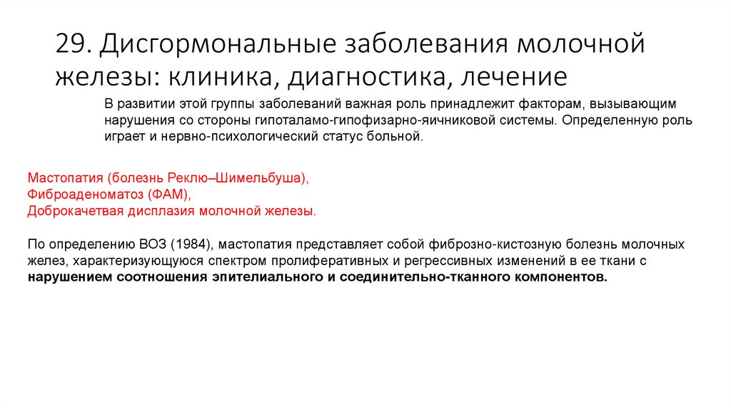 29. Дисгормональные заболевания молочнойжелезы: клиника, диагностика, лечение