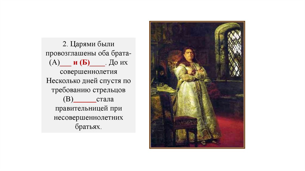 2. Царями былипровозглашены оба брата(А)___ и (Б)____. До их