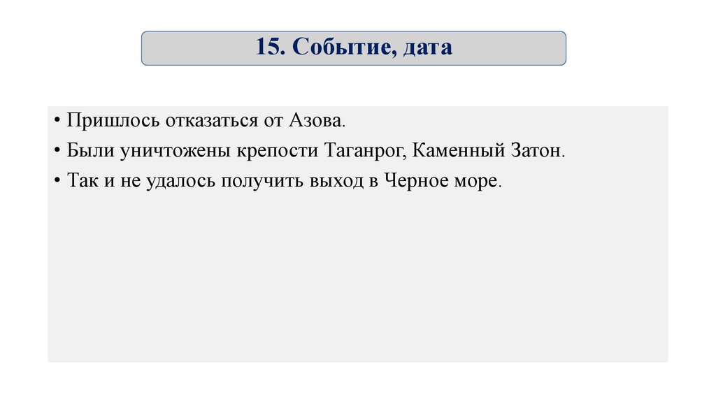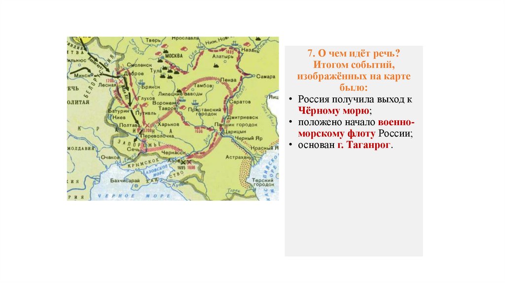 • Были уничтожены крепости Таганрог, Каменный Затон.