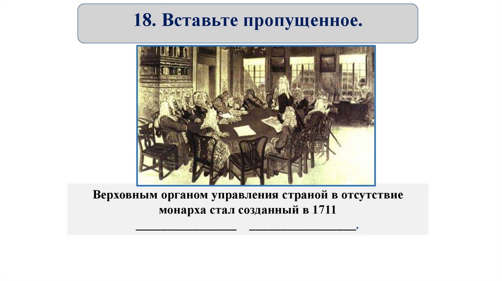 18. Вставьте пропущенное.Верховным органом управления страной в отсутствие