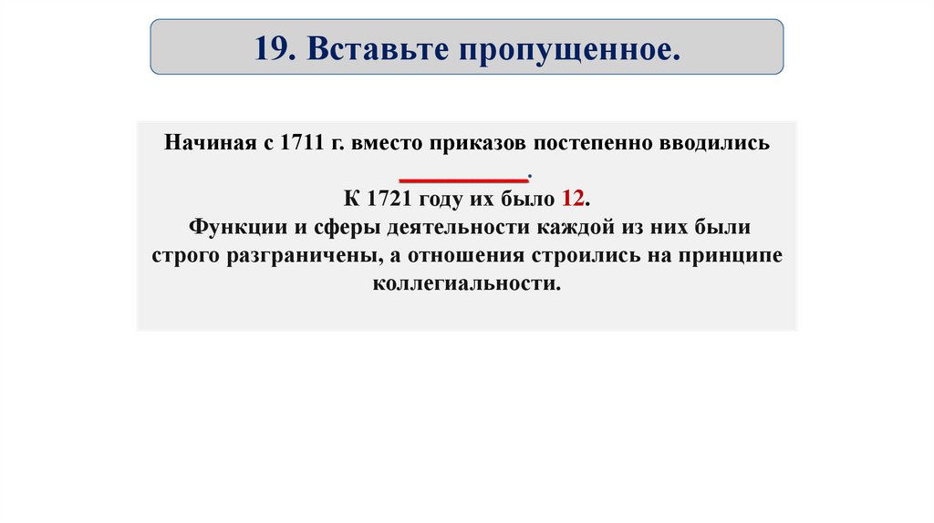 19. Вставьте пропущенное.Начиная с 1711 г. вместо приказов постепенно вводились