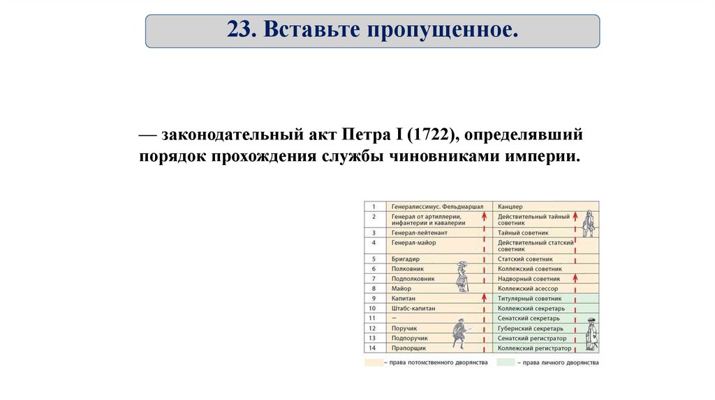 23. Вставьте пропущенное.— законодательный акт Петра I (1722), определявший