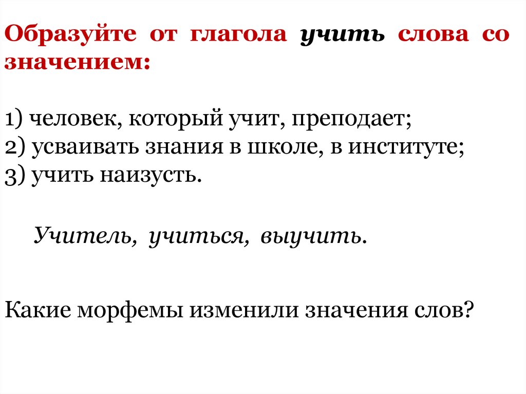 Образуйте от глагола учить слова созначением: